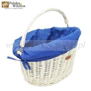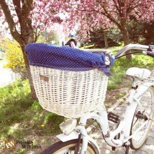 Kosz na rower wiklinowy kremowo-biały wkład granatowy