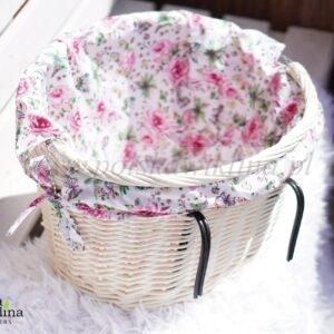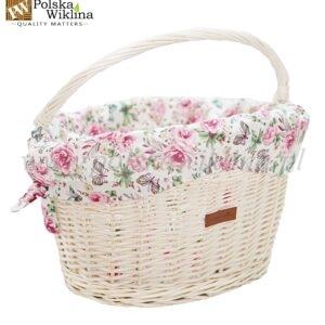 Kosz na rower wiklinowy kremowo-biały obszycie róże