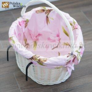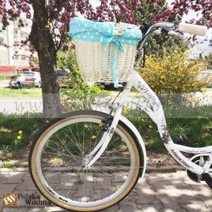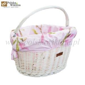 Kosz na rower wiklinowy kremowo-biały obszycie magnolia