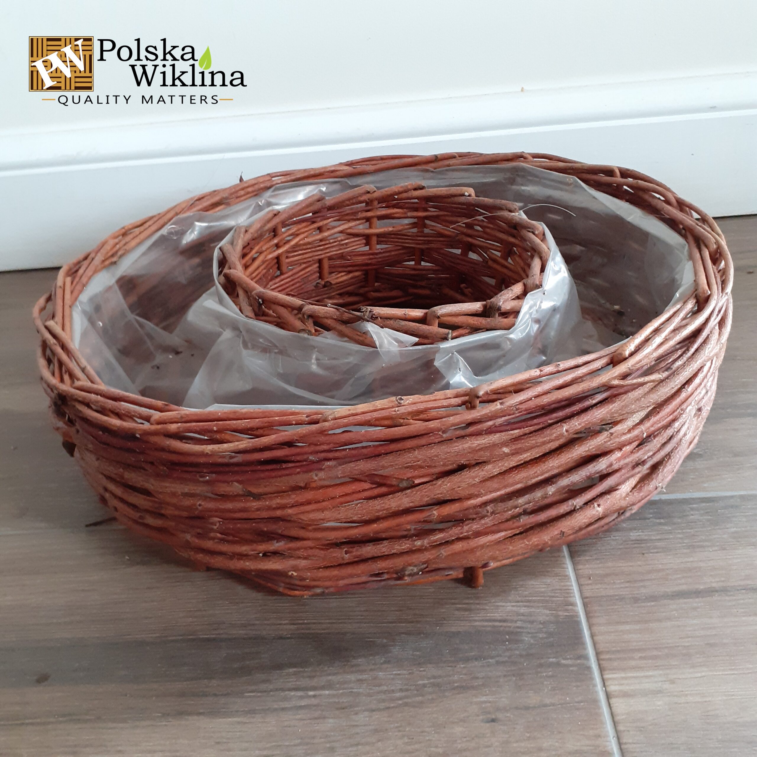 Wiklina jest nieokorowana. Środek doniczki wypełniony jest folią zabezpieczającą, która ułatwia użytkowanie i pielęgnację roślin. Wiklinowe skrzynki są niezbędnym produktem do ekspozycji kwiatów w sezonie, a także przez cały rok. Skrzynkę możesz wykorzystać jako osłonka na doniczkę na kwiaty, krzewy w ogrodzie, na balkonie, tarasie i w domu.