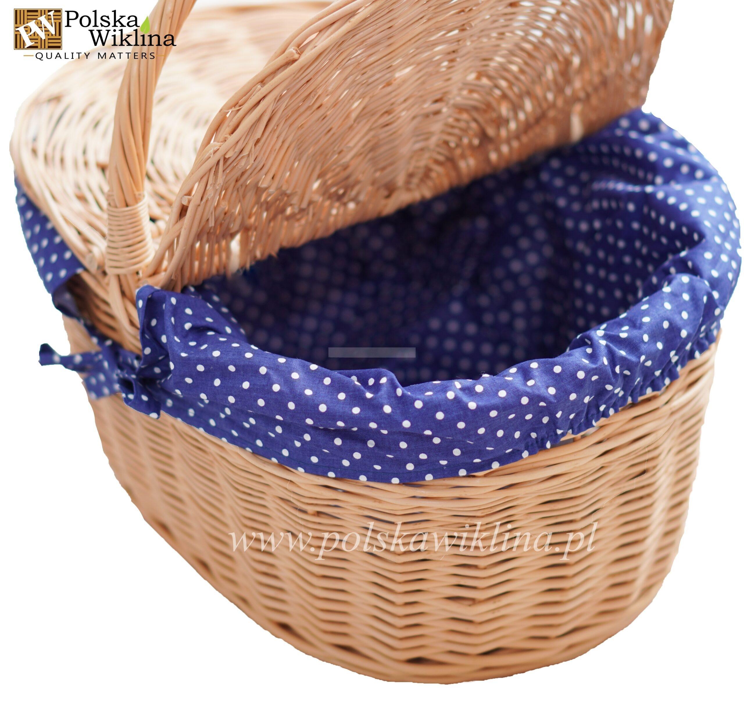 | Specyfikacja | Do produkcji kosza z wikliny wykorzystano najwyższej jakości wiklinę pochodzącą z polskich upraw. Kosz posiada Kosz dodatkowe wieczka rozszerzające jego funkcjonalność. Wieczka otwierane są w kierunku rączki. Kosz piknikowy jest doskonały nie tylko na piknik na łonie natury w gronie najbliższych, ale równie świetnie sprawdzi się jako zamykany pojemnik dekoracyjny do domu, kuchni, lub jako kosz na zakupy. |