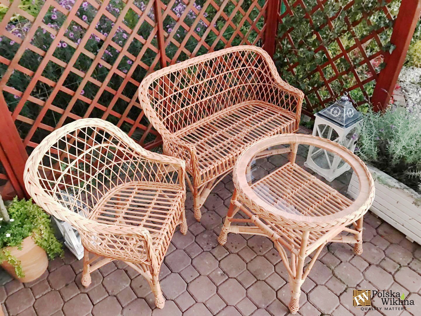| Specyfikacja | Sofa została starannie wykonana, z dbałością o każdy detal. Do jej produkcji użyto taśmę wiklinową, oraz grube wiklinowe kije, dzięki czemu jest trwała i solidnie wykonana, a jej konstrukcja mocna. Pamiętaj, że użytkując swoje meble wiklinowe należy zadbać, o odpowiednie podłoże. Do produkcji naszych wyrobów wykorzystujemy zszywki, gwoździe, wkręty i inne metalowe elementy, dzięki którym nasze produkty nie tylko cieszą oko ale są solidnie wykonane i scalone. Zaleca się umieszczanie mebli na płytkach, dywanie lub podbicie filcem płozów i nóg. Może również wydawać dźwięki jak i zmienić nieco kolor. |
