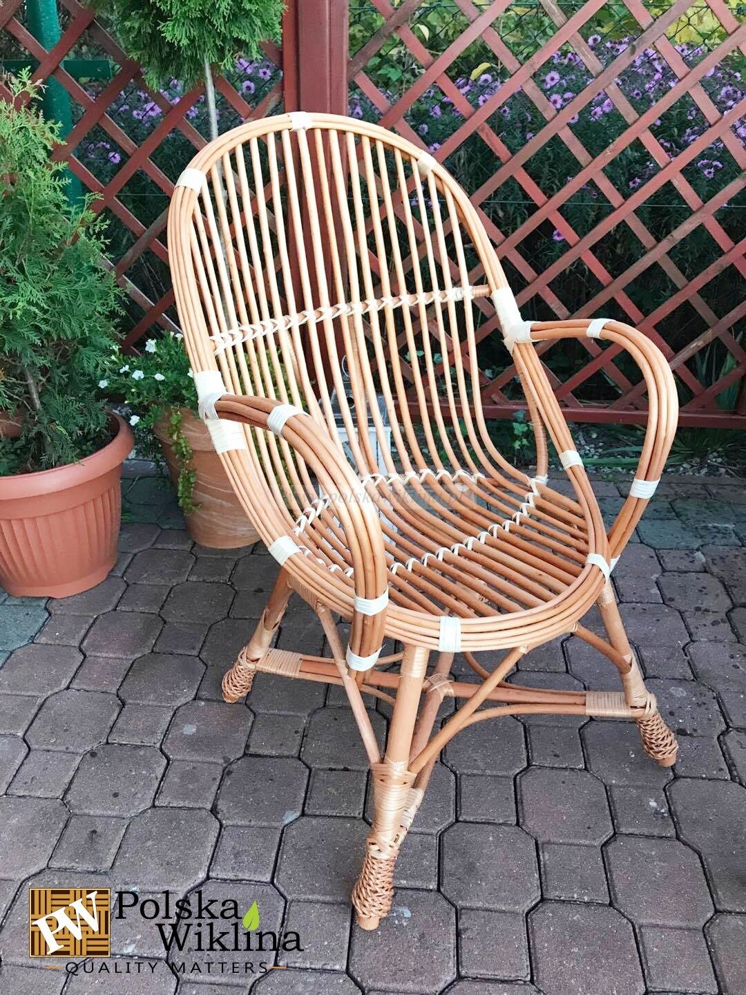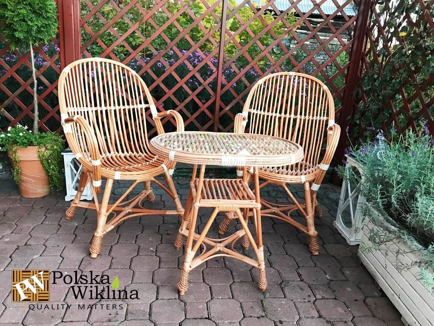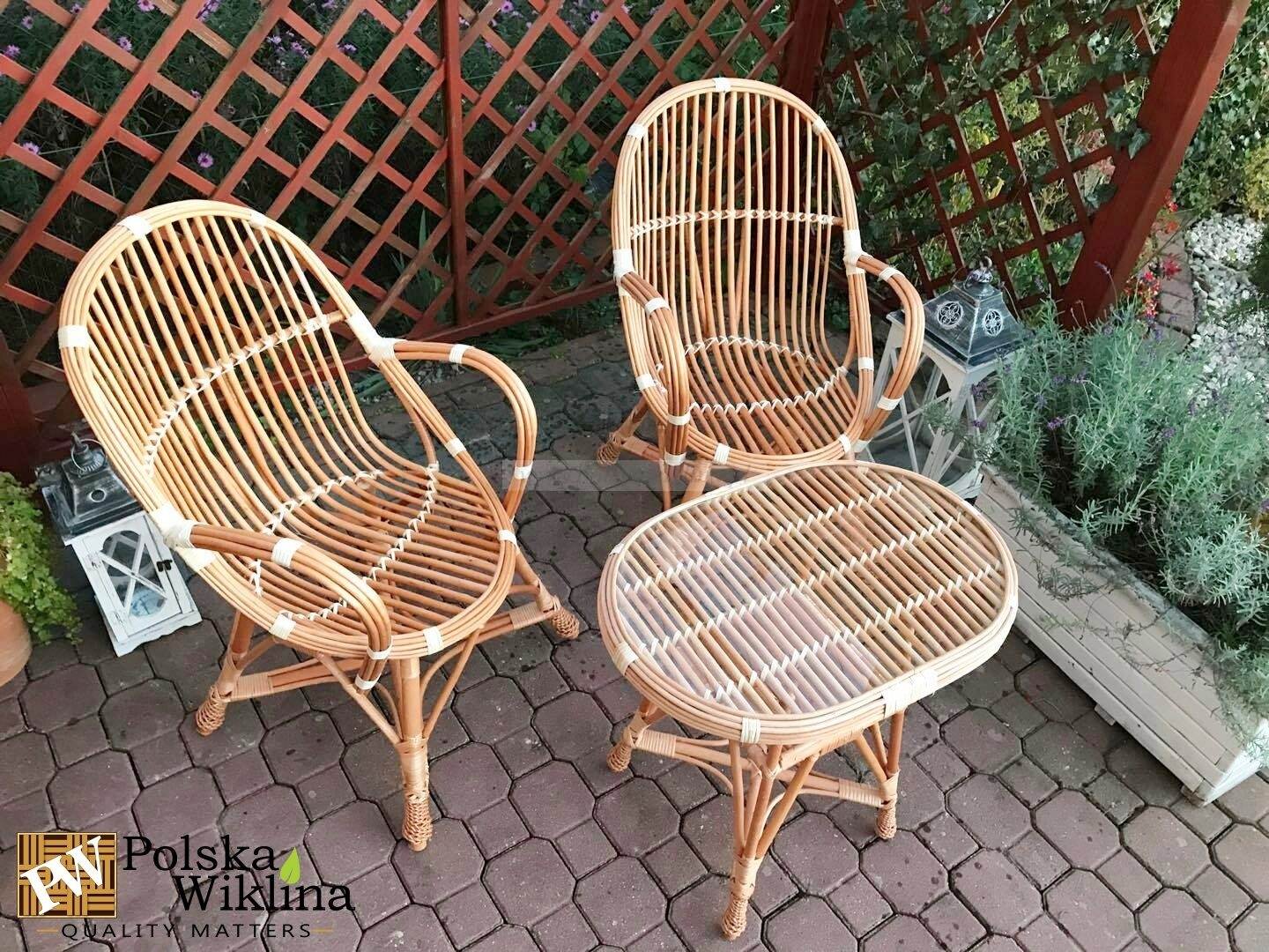 | Specyfikacja | Meble są ręcznie wykonany z wikliny pochodzącej z polskich upraw. Do ich produkcji użyto grube wiklinowe kije, a także zszywki, gwoździe, wkręty i inne metalowe elementy. Blat stołu wykonany jest z kijów wiklinowych i pokryty szybą. Zaleca się umieszczanie mebli na płytkach, dywanie lub podbicie filcem płozów i nóg. Warto zabezpieczyć Fotel impregnatem do drewna. Aby zapobiec matowieniu wikliny wystarczy przecierać wilgotną szmatką lub myć wodą z dodatkiem sody oczyszczonej lub soku z cytryny. Produkt może posiadać lekkie rozwarstwienia i pęknięcia. Może również wydawać dźwięki jak i zmienić nieco kolor. |
